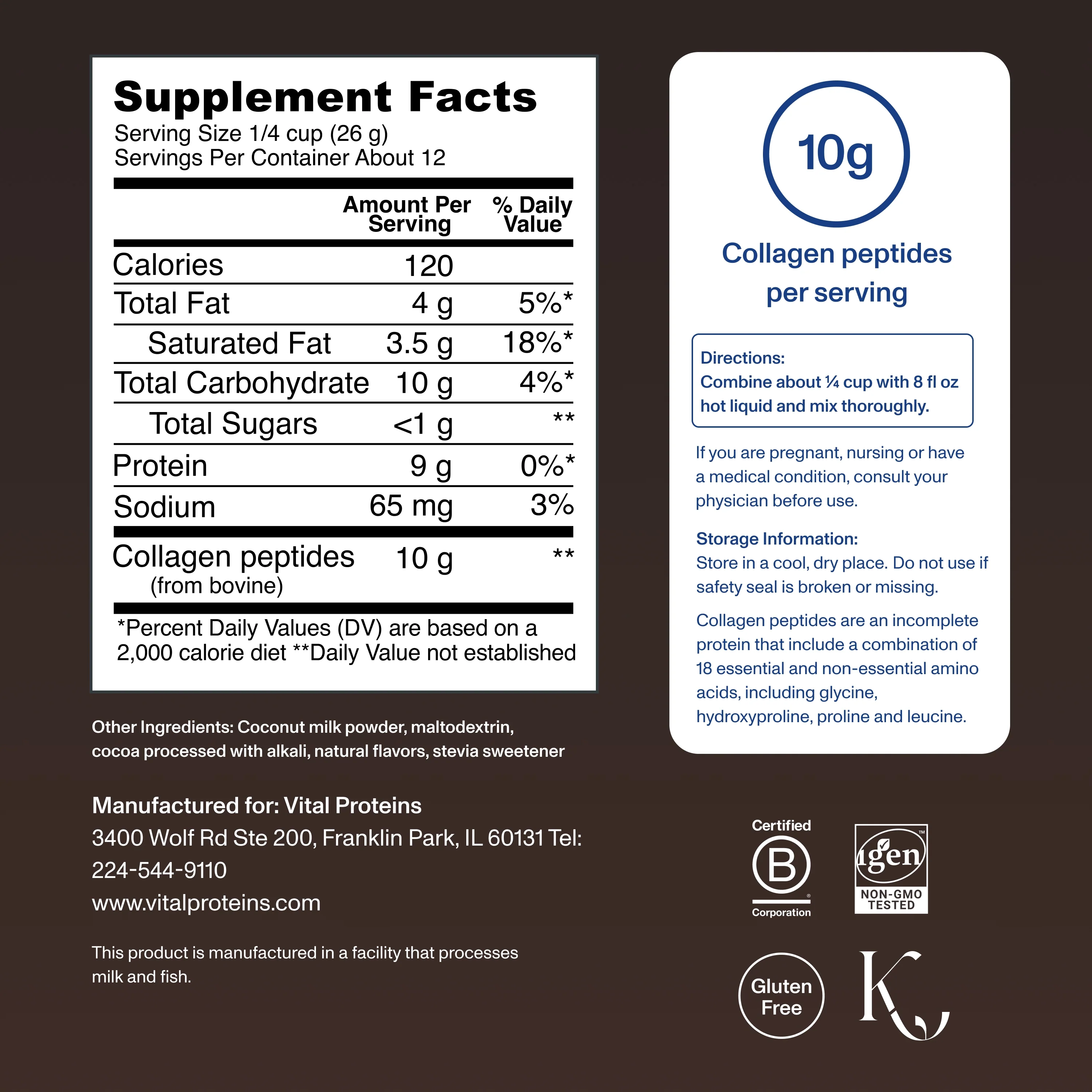 For a made-without-dairy upgrade to your morning routine, reach for Vital Proteins Collagen Creamer® in Mocha! Packed with 10g of collagen per serving and MCTs from coconut milk powder, this morning staple ensures a peppy start to any day.**